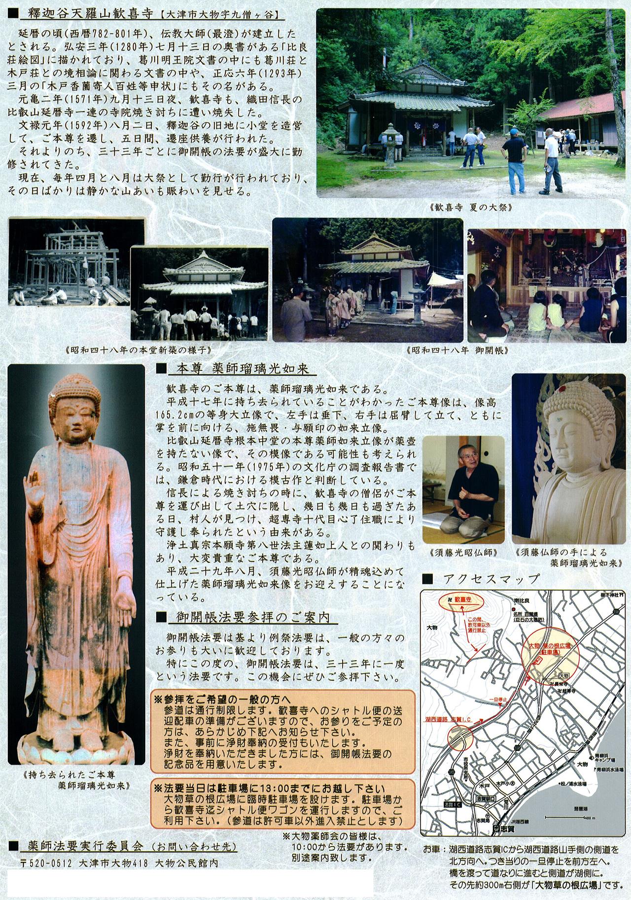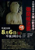 | 6 | 日 | 14:00~ 大物釋迦谷天羅山歓喜寺御開帳法要 参道は通行制限となりますので、大物草の根広場よりシャトル便にて送迎となります。 (駐車場へは13時までに集合ください) |